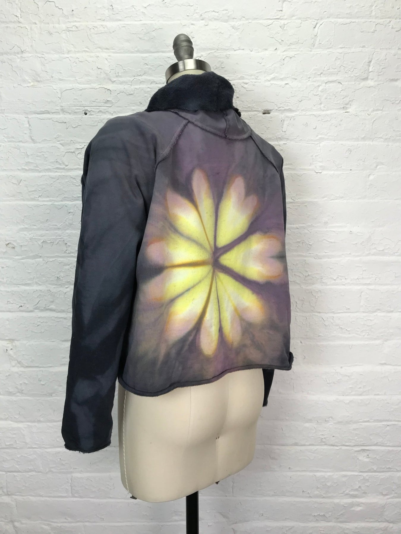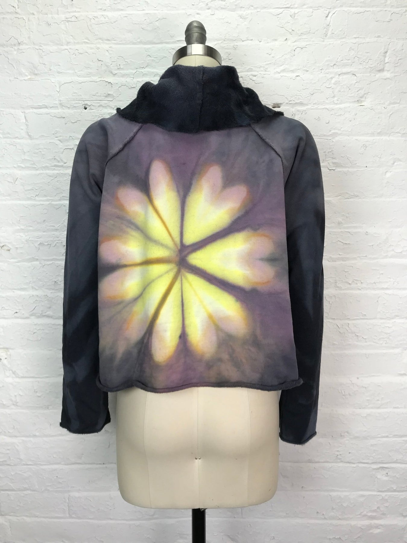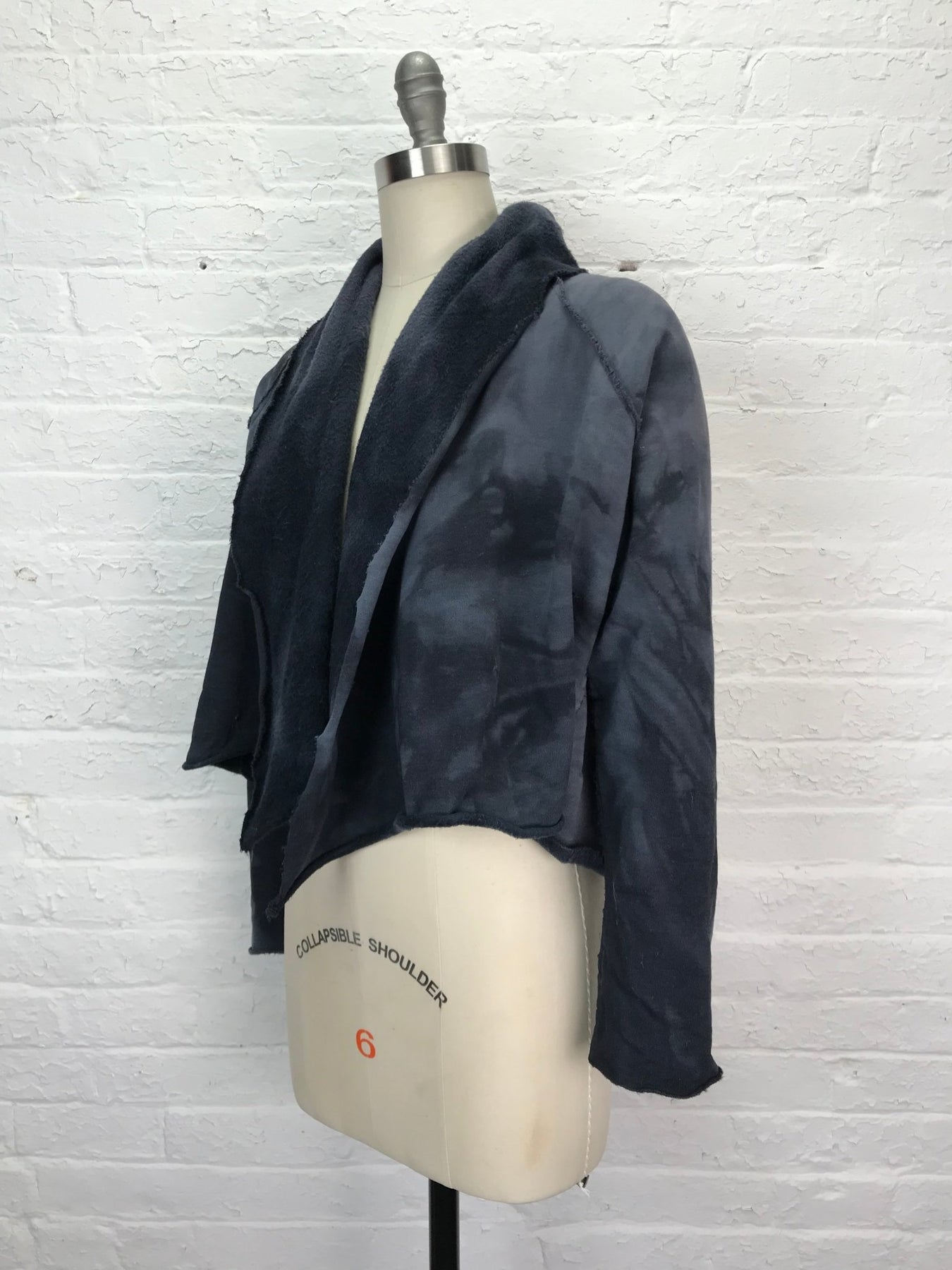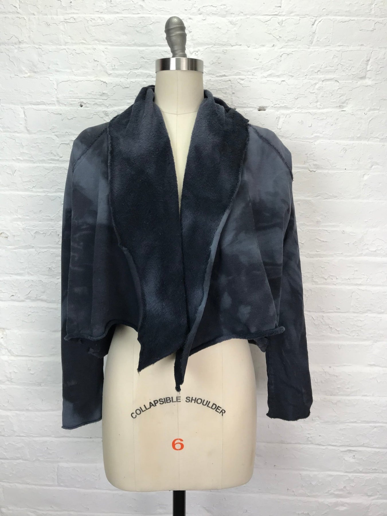 Wrap yourself in warmth and wearable art with this reversible hand-dyed bamboo fleece jacket. Each piece is individually dyed by the artist, creating organic gradients and texture. Crafted from ultra-soft, eco-friendly bamboo fleece, it features an easy, relaxed silhouette and raw-edge detailing.  Effortlessly versatile, it layers beautifully over everyday wear or elevates a statement look.