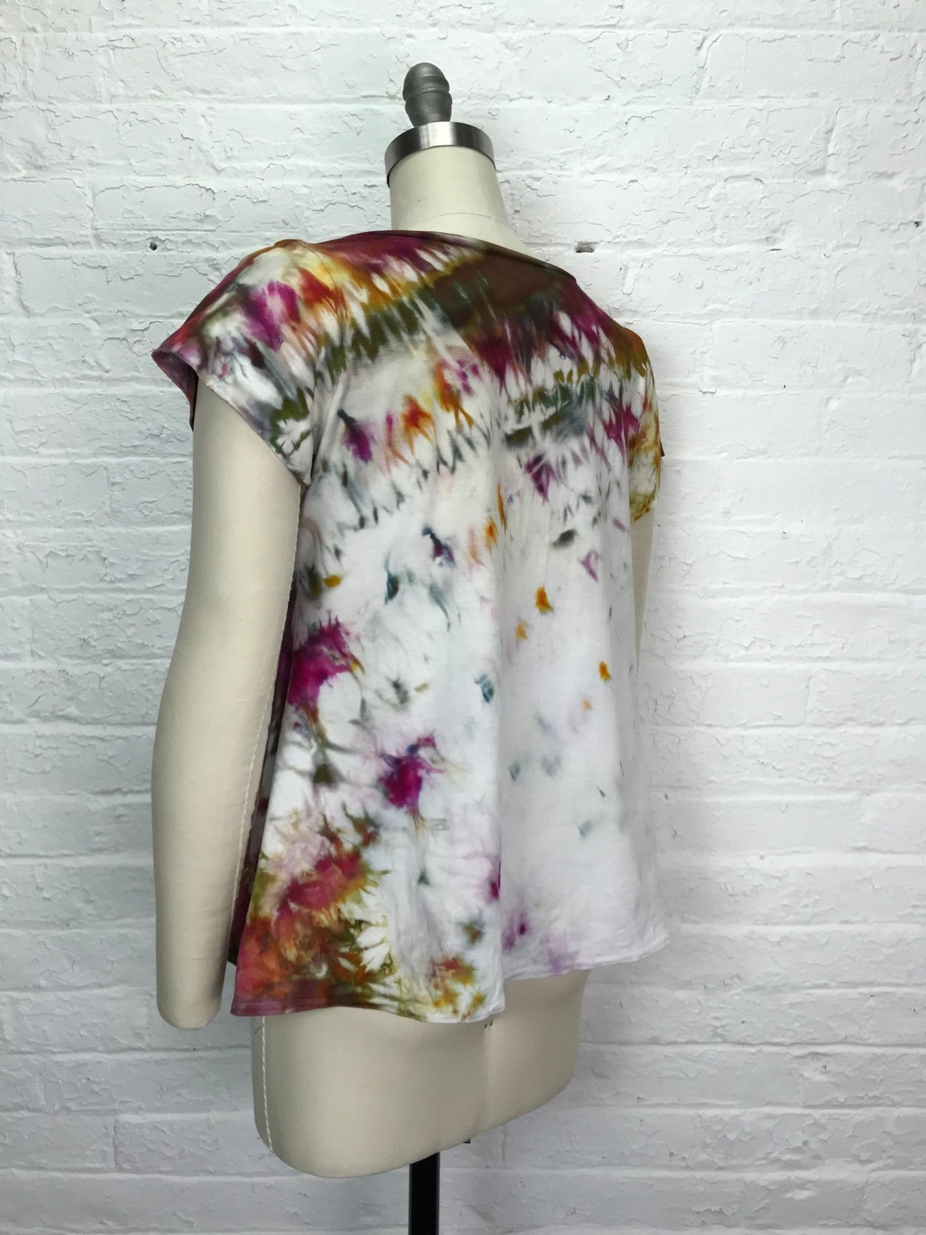 Vera V - Neck Cap Sleeve Top in Rust and Rose Botanical - Cloud Candy